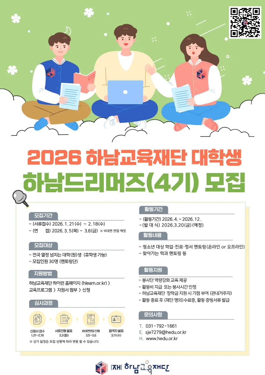 2026년 하남교육재단 대학생 하남드리머즈(4기) 모집